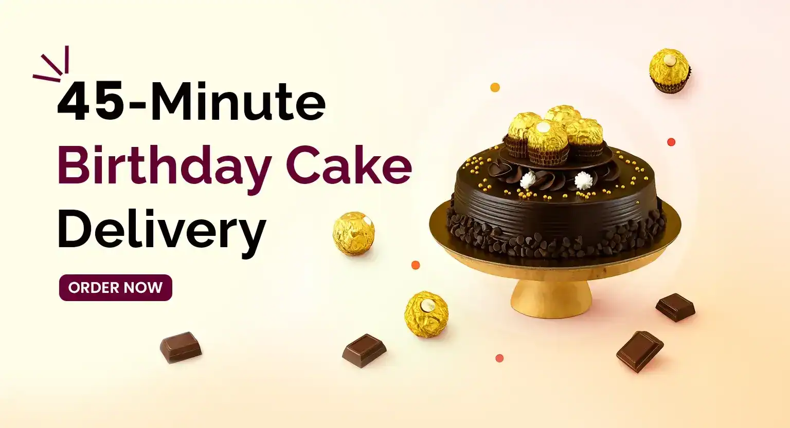 CakeSquare offers 45-minute delivery for standard birthday cakes within our delivery zones. Delivery times may vary slightly depending on traffic and location.